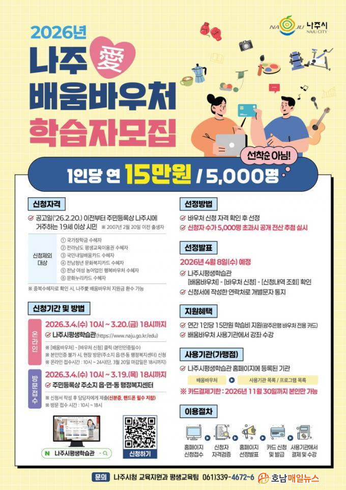 ³ªÁֽô 19¼¼ ÀÌ»ó ½Ã¹ÎÀ» ´ë»óÀ¸·Î ¿¬°£ 15¸¸ ¿øÀ» ¹Ù¿ìó Àü¿ë Ä«µå·Î Áö¿øÇÏ´Â ¡®³ªÁÖ¾Ö¹è¿ò¹Ù¿ìó¡¯ ÇнÀÀÚ ½ÅûÀ» 3¿ù 4ÀϺÎÅÍ 20ÀϱîÁö Á¢¼öÇÑ´Ù°í 23ÀÏ ¹àÇû´Ù.