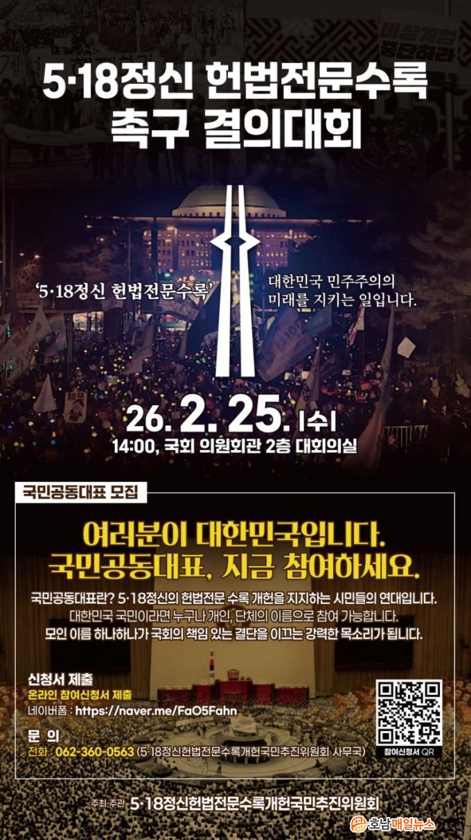 À̳¯ ±¹¹Î°áÀÇ´ëȸ´Â ¡®5¡¤18 Çå¹ýÀü¹® ¼ö·Ï °³Çå ±¹¹ÎÃßÁøÀ§¿øÈ¸¡¯(ÀÌÇÏ ÃßÁøÀ§¿øÈ¸)·Î ÁÖÃÖ·Î ¿¸®¸ç, ÃßÁøÀ§´Â 5¡¤18Á¤½Å Çå¹ýÀü¹® ¼ö·Ï¿¡ Âù¼ºÇÏ´Â ±¹¹Î ´©±¸³ª Âü¿©ÇÒ ¼ö ÀÖµµ·Ï °ø°³ ¸ðÁý ¹æ½ÄÀ¸·Î ±¸¼ºµÆÀ¸¸ç, ÇöÀç±îÁö 231°³ ±â°ü¡¤´Üü µîÀÌ ÇÔ²²Çϰí ÀÖ´Ù.