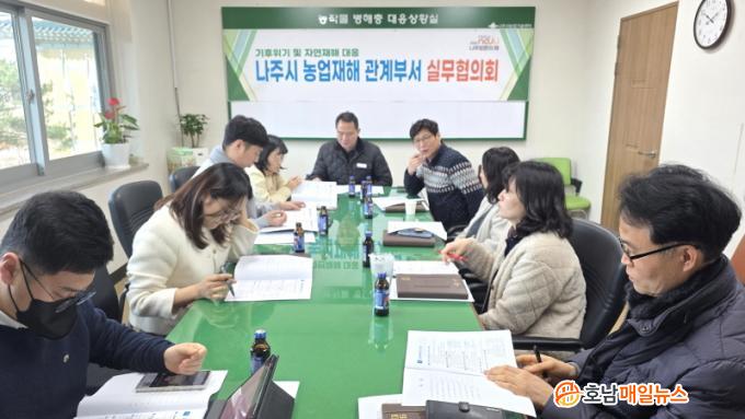 À̹ø ÇùÀÇȸ´Â ³ó¾÷Á¤Ã¥°ú, ¹è¿ø¿¹À¯Åë°ú, Ãà»ê°ú, ³ó¾÷ÁøÈï°ú, ±â¼úÁö¿ø°ú, ³óÇùÁß¾Óȸ ³ªÁÖ½ÃÁöºÎ µî ³ó¾÷ÀçÇØ °ü·Ã ºÎ¼ 10¸íÀÌ Âü¼®ÇØ ºÎ¼º° ÀçÇØ ´ëÀÀ ±â´ÉÀ» °øÀ¯Çϰí Çù¾÷ ü°è¸¦ ±¸ÃàÇϱâ À§ÇØ ¸¶·ÃµÆ´Ù.