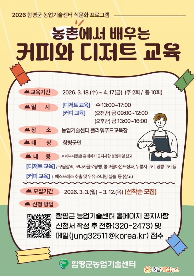 ÇÔÆò±º ³ó¾÷±â¼ú¼¾ÅÍ´Â ¡°³»´Þ 3ÀϺÎÅÍ 12ÀϱîÁö ¡®³óÃÌ¿¡¼ ¹è¿ì´Â Ä¿ÇÇ¿Í µðÀúÆ® ±³À°¡¯ ¼ö°»ýÀ» ¸ðÁýÇÑ´Ù¡±°í 27ÀÏ ¹àÇû´Ù.