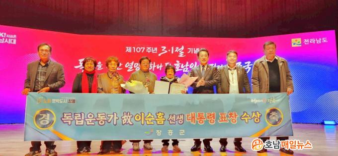 Áö³ 3¿ù 1ÀÏ Àü³²µµÃ» ±è´ëÁß°´ç¿¡¼ ¿¸° Á¦107ÁÖ³â 3¡¤1Àý ±â³ä½Ä¿¡¼´Â ÀåÈï Ãâ½Å °í(ͺ) À̼øÈì ¼±»ý(1908.2.13.~1985.6.1.)ÀÌ µ¶¸³À¯°øÀÚ ´ëÅë·É ǥâÀ» ¼ö»óÇß´Ù.
