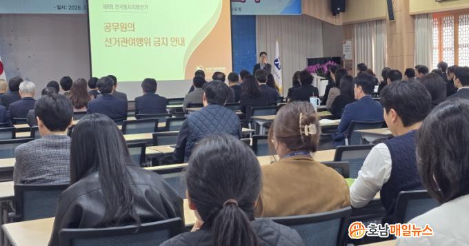 À̹ø ±³À°Àº Á¦9ȸ Àü±¹µ¿½ÃÁö¹æ¼±°Å¸¦ ¾ÕµÎ°í °ø¹«¿øÀÇ Á¤Ä¡Àû Á߸³ Àǹ«¸¦ µÇ»õ±â°í ¾÷¹« ÃßÁø °úÁ¤¿¡¼ ¹ß»ýÇÒ ¼ö ÀÖ´Â À§¹ý ÇàÀ§¸¦ »çÀü¿¡ ¿¹¹æÇϱâ À§ÇØ ¸¶·ÃµÆ´Ù.