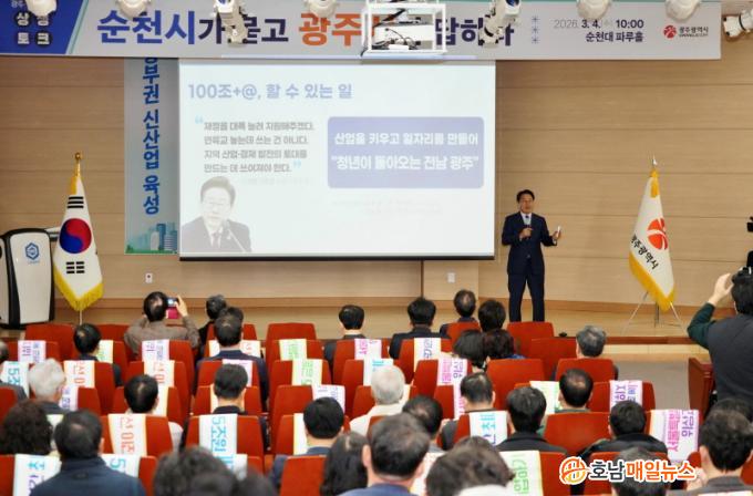 °±âÁ¤ ±¤ÁÖ½ÃÀåÀº ¡°µ¿ºÎ±Ç »ê¾÷±¸Á¶ ÀüȯÀ¸·Î ±â¾÷À» À°¼ºÇϰí ÀÏÀÚ¸®¸¦ ´Ã¸®¸é »ç¶÷ÀÌ ¸ð¿©µå´Â ºÎ°ÇÑ µµ½Ã¸¦ ¸¸µé ¼ö ÀÖ´Ù¡±¸ç ¡°ÅëÇÕ ÀÌÈÄ ±¤ÁÖ¿Í Àü³²Àº ´ëÇѹα¹ÀÇ ¼ºÀåÀ» À̲ø¸ç ¡®ÀÎ ±¤ÁÖ¡¯, ¡®ÀÎ Àü³²¡¯ÀÇ ½Ã´ë¸¦ ¿ °ÍÀÌ´Ù¡±°í ¸»Çß´Ù.