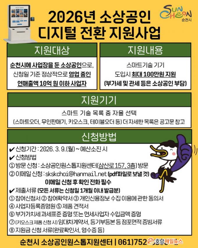 Á¦Ãâ¼·ù´Â Âü¿©½Åû¼, »ç¾÷ÀÚµî·ÏÁõ¸í¿ø ¶Ç´Â »ç¾÷ÀÚµî·ÏÁõ, ¸ÅÃâ¾× ÁõºùÀÚ·á, Á¦Ç° °ßÀû¼ µîÀÌ´Ù. ÀÚ¼¼ÇÑ »çÇ×Àº ¼øÃµ½Ã ´©¸®Áý °ø°í¹®À» È®ÀÎÇϰųª ¼øÃµ½Ã ¼Ò»ó°øÀοø½ºÅéÁö¿ø¼¾ÅÍ(061-752-8590~1) ¶Ç´Â ¼øÃµ½Ã °æÁ¦ÁøÈï°ú(061-749-5736)·Î ¹®ÀÇÇÏ¸é µÈ´Ù.