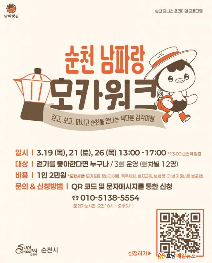 ½Ã °ü°èÀÚ´Â ¡°¼øÃµ ³²ÆÄ¶û ¸ðÄ«¿öÅ©´Â ¹Ù´å±æ °È±â¿Í Ä¿ÇÇ, ÈÞ½ÄÀ» °áÇÕÇÑ ¼øÃµ½Ã¸¸ÀÇ ÇÁ¸®¹Ì¾ö À£´Ï½º üÇè ÇÁ·Î±×·¥¡±À̶ó¸ç, ¡°ÂªÀº ½Ã°£ÀÌÁö¸¸ ÀÏ»ó¿¡ ½°Ç¥¸¦ Âï°í ½º½º·Î¿¡°Ô ÁøÁ¤ÇÑ ÈÞ½ÄÀ» ¼±¹°ÇÏ´Â ¼ÒÁßÇÑ ½Ã°£ÀÌ µÇ±æ ±â´ëÇÑ´Ù¡±°í ¸»Çß´Ù.