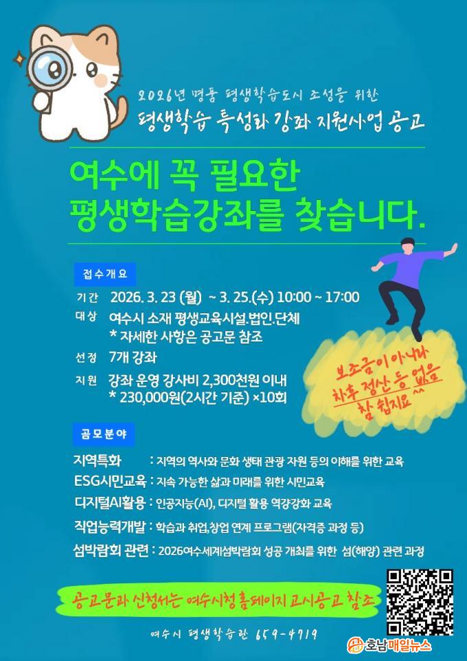¿©¼ö½Ã´Â À̹ø »ç¾÷À» ÅëÇØ Áö¿ª Ư¼ºÀ» ¹Ý¿µÇÑ Æò»ý±³À° ÄÜÅÙÃ÷¸¦ È®´ëÇÏ°í ½Ã¹ÎµéÀÇ ÇнÀ Âü¿© ±âȸ¸¦ ³ÐÇô Áö¿ª»çȸ ¿ª·® °È¿Í Æò»ýÇнÀ ¹®È È®»ê¿¡ ±â¿©ÇÒ °ÍÀ¸·Î ±â´ëÇϰí ÀÖ´Ù.
