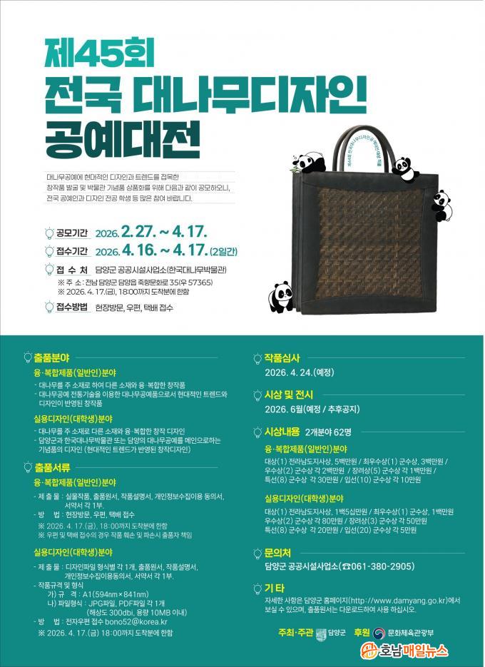 Á¢¼ö´Â ¿À´Â 4¿ù 16ÀϺÎÅÍ 17ÀϱîÁö ÀÌÆ²°£ Çѱ¹´ë³ª¹«¹Ú¹°°ü(061-380-2905)¿¡¼ ¹ÞÀ¸¸ç, ½Ã»óÀº ÃÑ 62¸íÀ» ¼±Á¤ÇØ »óÀå°ú ÇÔ²² ÃÑ 2,860¸¸ ¿øÀÇ »ó±ÝÀ» ¼ö¿©ÇÒ °èȹÀÌ´Ù.