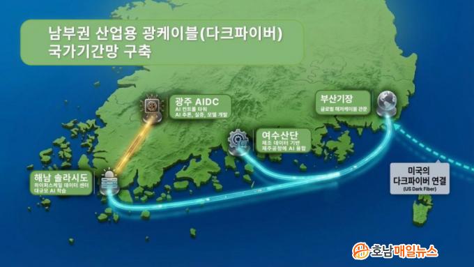 ºÎ»ê ±âÀå¿¡¼ ¿©¼ö ±¹°¡»ê´Ü±îÁö »ê¾÷¿ë ±¤ÄÉÀ̺íÀ» ¼³Ä¡ÇØ ±¹Á¦ ÇØÀúÄÉÀÌºí °ÅÁ¡°ú Á÷Á¢ ¿¬°áµÇ´Â µ¥ÀÌÅÍ Åë·Î¸¦ ±¸ÃàÇϰí, ÇØ³² ¼Ö¶ó½Ãµµ µ¥ÀÌÅͼ¾ÅÍ Å¬·¯½ºÅÍ¿Í ±¤ÁÖ AI µ¥ÀÌÅͼ¾Å͸¦ ÇϳªÀÇ µ¥ÀÌÅ͸ÁÀ¸·Î ¿¬°áÇÑ´Ù´Â ±¸»óÀÌ´Ù.