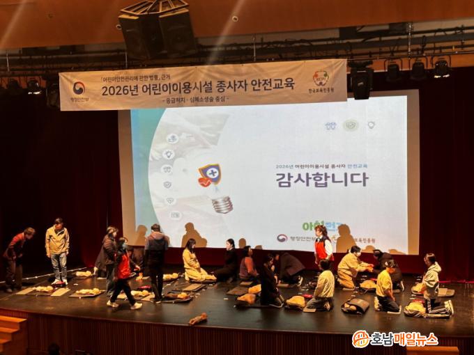 ¾î¸°ÀÌ ÀÌ¿ë½Ã¼³ Á¾»çÀÚ ¾ÈÀü±³À°Àº ¡¸¾î¸°ÀÌ ¾ÈÀü°ü¸®¿¡ °üÇÑ ¹ý·ü¡¹¿¡ µû¸¥ ¹ýÁ¤ Àǹ«±³À°À¸·Î, ¾î¸°ÀÌ ÀÌ¿ë½Ã¼³¿¡¼ 13¼¼ ¹Ì¸¸ ¾î¸°À̸¦ ´ë»óÀ¸·Î ±³À°¡¤º¸À° µîÀÇ ¾÷¹«¸¦ ¼öÇàÇÏ´Â Á¾»çÀÚ´Â ¸Å³â ¿Â¶óÀÎ À̷б³À° 2½Ã°£°ú ÀÀ±Þóġ ´ë¸é ½Ç½À±³À° 2½Ã°£ µî ÃÑ 4½Ã°£ ÀÌ»óÀÇ ¾ÈÀü±³À°À» À̼öÇØ¾ß ÇÑ´Ù.