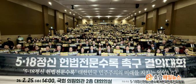 ° ½ÃÀåÀº ÀÌ¾î ¡°5¡¤18Á¤½ÅÀÇ Çå¹ý Àü¹® ¼ö·ÏÀº ¿©¾ß¸¦ ³Ñ¾î ±¹¹ÎÀû µ¿Àǰ¡ ÀÌ·ïÁø »ç¾ÈÀ̸ç, ÇàÁ¤Àû¡¤ÀÔ¹ýÀû Áغñµµ ÃæºÐÈ÷ °®ÃçÁ³´Ù¡±¸ç ¡°Á¤Ä¡±ÇÀÌ Ã¥ÀÓ ÀÖ´Â °á´ÜÀ¸·Î À̸¦ ¿Ï¼ºÇØ¾ß ÇÑ´Ù¡±°í Ã˱¸Çß´Ù.