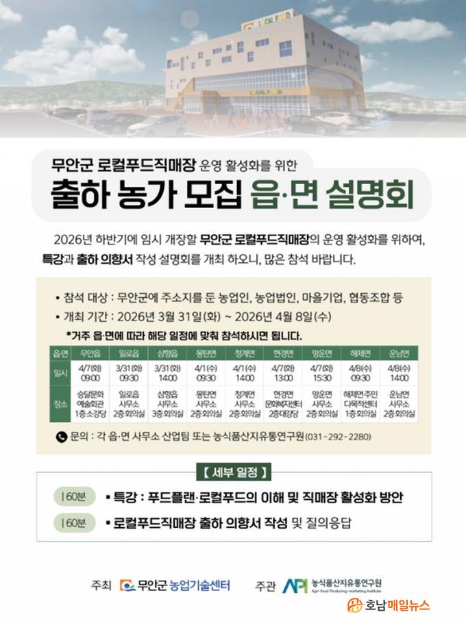 À̹ø ¼³¸íȸ´Â ±âÁ¸ Âü¿©³ó°¡¿Í ½Å±Ô Âü¿©¸¦ Èñ¸ÁÇÏ´Â ³ó¾÷ÀÎÀ» ´ë»óÀ¸·Î ÁøÇàµÇ¸ç ¡ã¸À¶ã¹«¾È ¸Ô°Å¸® ÅëÇÕÇ÷§Æû ±¸Ãà»ç¾÷ ¼³¸í ¡ã·ÎÄÃǪµå Á÷¸ÅÀå ¿î¿µ ÀýÂ÷ ¾È³» ¡ãÃâÇÏ ÀÇÇâ Á¶»ç ¹× ÇöÀå »ó´ã µîÀ¸·Î ±¸¼ºµÈ´Ù.