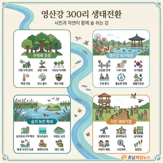 ÀÌ¿Í ÇÔ²² ¿µ»ê° 300¸® Àü ±¸°£ Á¦¹æÀ» µû¶ó ¹Ì·¡Çü ¼ö¸ñÃàÀ» Á¶¼ºÇÑ´Ù. ±âÁ¸ ¼ö¸ñÀº ü°èÀûÀ¸·Î °ü¸®Çϰí, Áö¿ª ȯ°æ¿¡ ¸Â´Â ¼öÁ¾À» º¸¿Ï ½ÄÀçÇØ 100³âÀ» ³»´Ùº¸´Â ³ì»ö »ý¸íÃàÀ¸·Î Ű¿î´Ù´Â ±¸»óÀÌ´Ù. À̸¦ ÅëÇØ Æø¿° Àú°¨, ¹Ì¼¼¸ÕÁö °¨¼Ò, ź¼ÒÈí¼ö, È«¼ö ´ëÀÀ µî ±âÈÄÀ§±â ´ëÀÀ È¿°ú¸¦ µ¿½Ã¿¡ È®º¸ÇÒ °èȹÀÌ´Ù.