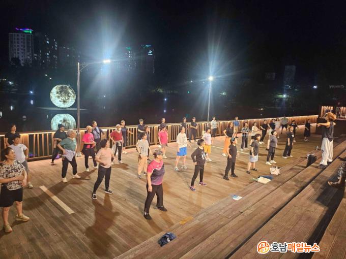 ÁÖ¿ùµ¿°ú ¹é¿îµ¿ µîÁö¿¡ °ÅÁÖÇÏ´Â ÁֹεéÀº Ǫ¸¥±æ °ø¿ø¿¡¼ ½Å¸í³ª´Â À²µ¿¿¡ ¸ÂÃç ½ÅüȰµ¿¿¡ ³ª¼°í ÀÖÀ¸¸ç, ȿõÁö±¸ ÁֹεéÀº ¹°ºû ±Ù¸°°ø¿ø È£¼ö¿¡ ¼¼¿öÁø ´Þºû Á¶Çü¹°ÀÇ °í¿î ÀÚÅÂ¿Í ºü¸¥ ¹ÚÀÚÀÇ À½¾ÇÀ» ¹þ »ï¾Æ ¿Á¤ÀûÀÎ ¿îµ¿À» Áñ±â°í ÀÖ´Ù.