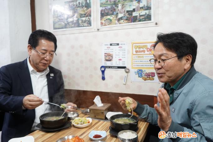 ±è ¿¹ºñÈ帴 À̳¯ ° ½ÃÀå°ú ÇÔ²² ¼øÃµ½Ã ¿ôÀå¿¡¼ »óÀΰú ½Ã¹ÎµéÀ» Á÷Á¢ ¸¸³µ´Ù. ±è ¿¹ºñÈĺ¸¿Í °½ÃÀåÀº ¡®ÃÖ±ÙÀÇ ¾î·Á¿î °æÁ¦»óȲÀ» ¸öÀ¸·Î ü°¨Çϰí ÀÖ´Ù¡¯´Â »óÀεéÀÇ È£¼Ò¿¡ °ø°¨À» Ç¥Çϰí, ¹Î»ýÁö¿ø±Ý Áö±Þ µî °ð¹Ù·Î ´ëÃ¥À» °±¸ÇÏ°Ú´Ù°í ¸»Çß´Ù. ÀÌ¾î ±¹¹ä°ñ¸ñ¿¡¼ »óÀεé°ú ½Ä»çµµ °°ÀÌ Çϸé¼, ¹Î½ÉÀ» ûÃëÇß´Ù.