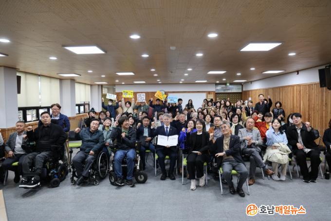 ¹Î È帴 À̳¯ ¿ÀÀü ±¤ÁÖ±¤¿ª½Ã Àå¾ÖÀÎÁ¾ÇÕº¹Áö°ü¿¡¼ Àü±¹Àå¾ÖÀÎºÎ¸ð¿¬´ë µî Àå¾ÖÀÎ ´Üü °ü°èÀÚ¿Í °¡Á·µéÀÌ Âü¼®ÇÑ °£´ãȸ¿¡¼ Á¤Ã¥ Á¦¾È¼¸¦ Àü´Þ¹Þ¾Ò´Ù.