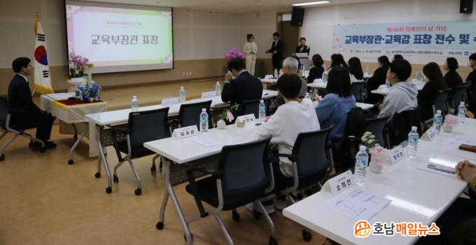 ¶ÇÇÑ, Çб³ ¹× Áö¿ª ±â°ü¿¡¼ ÃßõÇÑ Æ¯¼ö±³À°´ë»óÇлý 5¸í, Ư¼ö±³¿ø 4¸í, ÅëÇÕÇÐ±Þ ´ã´ç±³»ç 2¸í, Ư¼ö±³À°½Ç¹«»ç 5¸í, Àå¾ÖÇлýȰµ¿Áö¿ø »çȸº¹¹«¿ä¿ø 5¸í, Áö¿ª»çȸÀλç 3¸í µî 24¸íÀº ±³À°°¨ ǥâÀ» ¹Þ¾Ò´Ù.