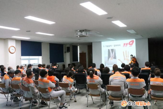 ÀÌ¿Í °ü·ÃÇØ 21ÀÏ ³ªÁÖ¼Ò¹æ¼ ´ëȸÀǽǿ¡¼ ±¸±Þ․±³À° ´ã´çÀÚ¿Í ÀÇ¿ë¼Ò¹æ´ë¿øÀÌ ÇÔ²²ÇÏ´Â ½ÉÆó¼Ò»ý¼ú ¼ÒÁý ±³À°ÀÌ ÁøÇàµÆ´Ù. À̹ø ±³À°ÀºCPR․AED ±³À°Àº ¹°·Ð ½ÇÁ¦ °ÀÇ¿¡ ÇÊ¿äÇÑ Àü´Þ ±â¹ý°ú ½Ã¿¬ ´É·Â Çâ»ó¿¡ ÁßÁ¡À» µ×´Ù.