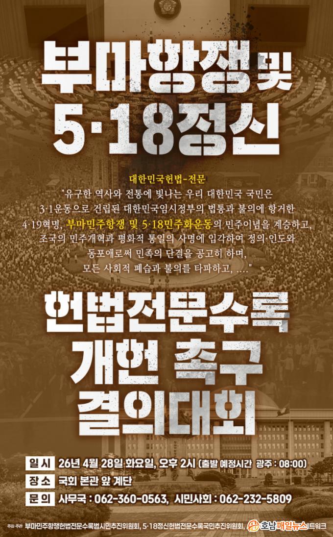 À̳¯ ±¹¹Î°áÀÇ´ëȸ´Â 5¡¤18Á¤½ÅÇå¹ýÀü¹®¼ö·Ï±¹¹ÎÃßÁøÀ§¿øÈ¸, ºÎ¸¶¹ÎÁÖÇ×ÀïÇå¹ýÀü¹®¼ö·Ï¹ü½Ã¹ÎÃßÁøÀ§¿øÈ¸, ½Ã¹ÎÁÖµµÇå¹ý°³Á¤Àü±¹³×Æ®¿öÅ© µî 3°³ ´Üü°¡ °øµ¿ ÁÖÃÖ¡¤ÁÖ°üÇÑ´Ù.