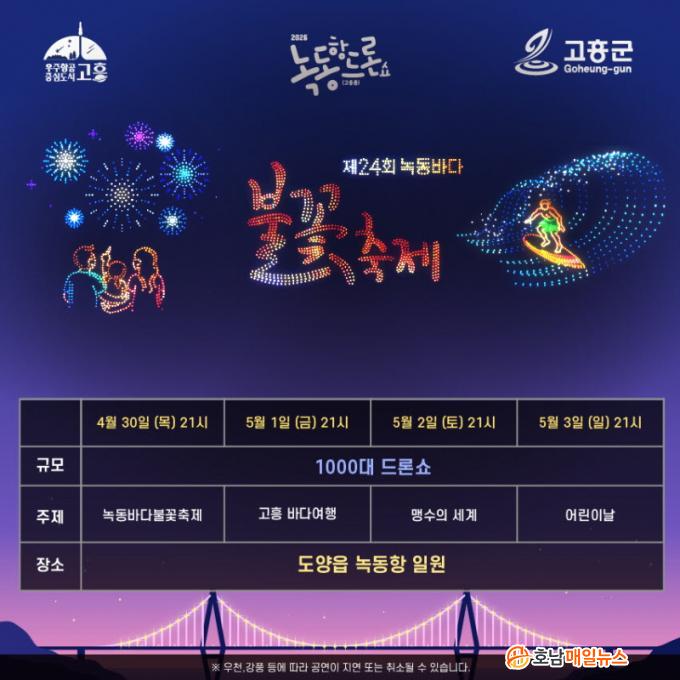 À̹ø °ø¿¬Àº °íÈïÀÇ ´ëÇ¥ ¾ß°£°ü±¤ ÄÜÅÙÃ÷ÀÎ µå·Ð¼î¿Í ºÒ²ÉÃàÁ¦¸¦ ¿¬°èÇØ º¼°Å¸®¸¦ ÇÑÃþ °ÈÇϰí, ±ºÀº ÃàÁ¦ÀåÀ» ¹æ¹®ÇÏ´Â °ü±¤°´¿¡°Ô ´õ¿í dz¼ºÇÑ ÇÁ·Î±×·¥À» ¼±º¸À̱â À§ÇØ ¸ÅÀÏ Àú³á 9½Ã Ưº°°ø¿¬À¸·Î ÁøÇàÇÑ´Ù.