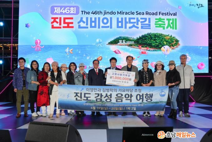 ÀÌ¿µ¸¸ ¹Ú»ç´Â ¡°Áøµµ¸¦ ¹æ¹®ÇØ ¶æ±íÀº ÃàÁ¦¿¡ ÇÔ²²Çϸç Áö¿ª¿¡ º¸ÅÆÀÌ µÇ°í ½Í¾ú´Ù¡±¶ó¸ç, ¡°¾ÕÀ¸·Îµµ Áøµµ¿¡ Áö¼ÓÀûÀÎ °ü½ÉÀ» °¡Áö°í ÀÀ¿øÇϰڴ١±¶ó°í ¸»Çß´Ù.