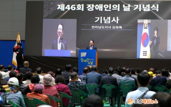 ±è¿µ·Ï Áö»ç´Â ¡°À̹ø Çà»ç´Â Àå¾ÖÀÎÀÇ ³¯À» ¸Â¾Æ µµ¹Î ¸ðµÎ°¡ Â÷º° ¾øÀÌ Á¸Áß¹Þ´Â »çȸ¸¦ ÇÔ²² ¸¸µéÀÚ´Â ¶æÀ» µÇ»õ±â´Â ÀÚ¸®¿´´Ù¡±¸ç ¡°Æ¯È÷ Àü³²¡¤±¤ÁÖ ÇàÁ¤ÅëÇÕÀ» °è±â·Î ´õ ³Ð¾îÁø »ýȰ±Ç¿¡¼ Àå¾ÖÀÎÀÇ ÀÚ¸³°ú »çȸÂü¿© ±âȸ¸¦ ³ÐÈ÷°í, º¸´Ù ÃÎÃÎÇÑ º¹Áöü°è¸¦ ±¸ÃàÇϰڴ١±°í ¸»Çß´Ù.