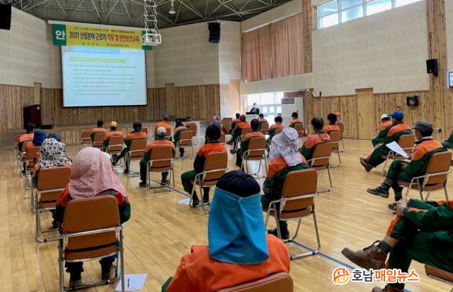 ¶ÇÇÑ, 6Àϰú 7ÀÏ »ê¸²ºÐ¾ß ÀÏÀÚ¸®»ç¾÷ ±Ù·ÎÀÚ 60¸íÀº °¢ Á¶º°·Î ¾ÈÀüº¸°ÇÁ÷¹«¿Í Äڷγª19 ¿¹¹æ °ü·Ã»çÇ׿¡ ´ëÇÏ¿© ÁýÁß ±³À°À» ¹Þ¾Ò´Ù.