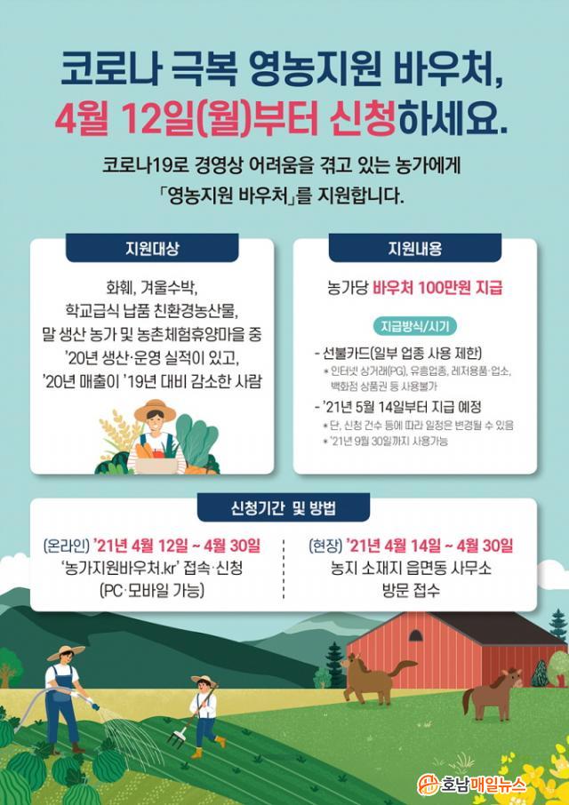 ¿µ³óÁö¿ø ¹Ù¿ìó ½ÅûÀº ¿Â¶óÀΰú ÇöÀå Á¢¼ö°¡ °¡´ÉÇÏ´Ù. ¿Â¶óÀÎÀº ¿À´Â 12ÀϺÎÅÍ 30ÀϱîÁö ¹Ù¿ìó ´©¸®Áý(https://³ó°¡Áö¿ø¹Ù¿ìó.kr)¿¡¼, ÇöÀåÁ¢¼ö´Â ¿À´Â 14ÀϺÎÅÍ 30ÀϱîÁö ³óÁö ¼ÒÀçÁö À¾¸éµ¿»ç¹«¼Ò¿¡¼ ÇÒ ¼ö ÀÖ´Ù.