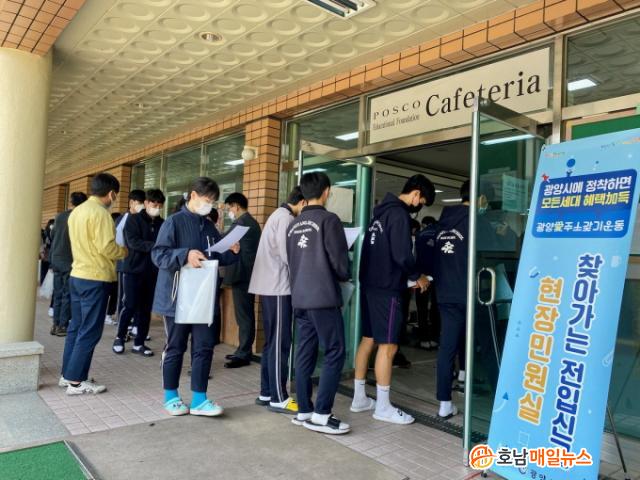±¤¾ç½Ã´Â 4¿ù 9ÀÏ ±ÝÈ£µ¿ Áֹμ¾ÅÍ¿Í ÇÔ²² ±¤¾çÁ¦Ã¶°íµîÇб³¸¦ ¹æ¹®ÇØ ¡®Ã£¾Æ°¡´Â ÀüÀÔ½Å°í ¼ºñ½º' Çà»ç¸¦ °®°í, ŸÁö¿¡ Áֹεî·ÏÀ» µÎ°í ÀÖ´Â ÇлýµéÀ» ´ë»óÀ¸·Î ±¤¾ç½Ã »ý¾Ö Áֱ⺰ Àα¸Á¤Ã¥ µî °¢Á¾ ÀüÀÔÇýÅà ȫº¸¿Í ÁÖ¼Ò ÀÌÀü ¼ºñ½º¸¦ Á¦°øÇß´Ù.