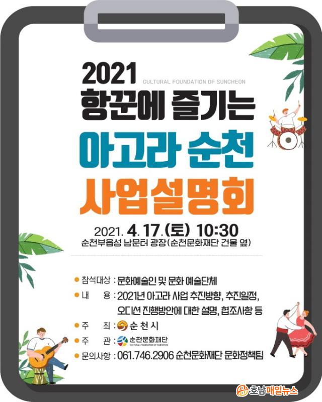 Àç´ÜÀº ¼øÃµ Áö¿ª ¹®È¿¹¼úÀÎµé ´ë»óÀ¸·Î ¡®Çײۿ¡ Áñ±â´Â ¾Æ°í¶ó ¼øÃµ¡¯ÀÇ 2021³â »ç¾÷¹æÇâ, ÃßÁøÀÏÁ¤, ¿Àµð¼Ç ¹æ½Ä µî¿¡ ´ëÇÑ ºê¸®Çΰú ±Ã±ÝÇÑ »çÇ×À» ÁúÀÇ ÀÀ´äÇÏ´Â ¹æ½ÄÀ¸·Î ÁøÇàÇÒ °èȹÀÌ´Ù.