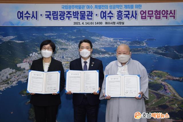 ¡ã ¿©¼ö½Ã(½ÃÀå ±Ç¿ÀºÀ)°¡ ³»³â 5¿ùºÎÅÍ 8¿ù±îÁö ±¹¸³±¤ÁÖ¹Ú¹°°ü ±âȹÀü½Ã½Ç¿¡¼ ¿¸®´Â ¡®¿©¼ö Ưº°Àü¡¯ ¼º°ø°³ÃÖ¸¦ À§ÇØ Áö³ 14ÀÏ ¿ÀÈÄ ½ÃÀå½Ç¿¡¼ ±¹¸³±¤ÁÖ¹Ú¹°°ü, ¿©¼ö Èï±¹»ç¿Í ¾÷¹«Çù¾àÀ» ü°áÇß´Ù.