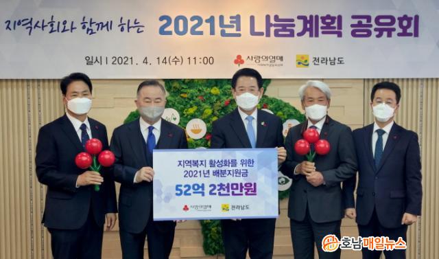 ±è Áö»ç´Â Àü´Þ½Ä¿¡¼ ¡°Àü±¹¿¡¼ º¹Áö ¼ö¿ä°¡ »ó´ëÀûÀ¸·Î ¸¹Àº Àü³²ÀÇ º¹Áö»ç¾÷¿¡ Å« ÈûÀ» º¸ÅÂÁà °¨»çÇÏ´Ù¡±¸ç ¡°¿ÃÇØ ¹èºÐµÈ 52¾ï ¿øÀº µµ¿òÀÇ ¼Õ±æÀÌ ÇÊ¿äÇÑ µµ¹Î¿¡°Ô Å« Èñ¸ÁÀ» ÁÖ´Â »ç¶ûÀÇ ¼±¹°ÀÌ µÉ °Í¡±À̶ó°í ¸»Çß´Ù.