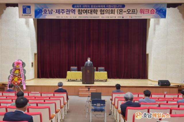 À̹ø ¿öÅ©¼óÀº 4¿ù 15ÀϺÎÅÍ ÀÌÆ²°£ Á¶¼±´ëÇб³ ¼¼®È¦ ´ëÈ£Àü±âȦ¿¡¼ ¿Â¶óÀΰú ¿ÀÇÁ¶óÀÎÀ» º´ÇàÇÑ ¹æ½ÄÀ¸·Î ÁøÇàµÇ¾úÀ¸¸ç, ±³À°ºÎ¿Í ±¹°¡Æò»ý±³À°ÁøÈï¿øÀÇ ÈÄ¿øÀ» ¹Þ¾Æ °³ÃֵƴÙ. ¿öÅ©¼óÀº ¡®´ëÇÐÀÇ Æò»ý±³À°Ã¼Á¦ Áö¿ø»ç¾÷(LiFE)¡¯À» ÁøÇàÇÏ´Â ´ëÇб³ °£ ±³·ù¿Í ¿ì¼ö»ç·Ê¸¦ °øÀ¯Çϰí, Áö¿ªÀÇ Æò»ý±³À° üÁ¦ ¹ßÀüÀ» À§ÇÑ Çù·Âü°è¸¦ ±¸ÃàÇϱâ À§ÇØ ¸¶·ÃµÆ´Ù.