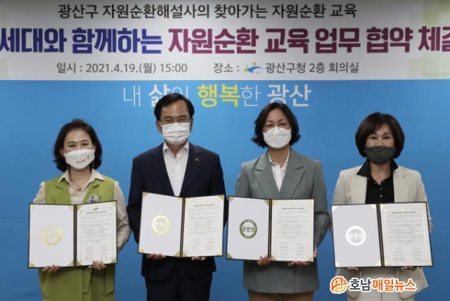 ±¤»ê±¸´Â 19ÀÏ ¿ÀÈÄ ±¸Ã» 2Ãþ »óȲ½Ç¿¡¼ ±¤ÁÖ¼ºÎ±³À°Áö¿øÃ»(±³À°Àå ¹ÚÁÖÁ¤), ±¤»ê±¸ ¾î¸°ÀÌÁý¿¬ÇÕȸ(ȸÀå È«±â¿µ), Çѱ¹À¯Ä¡¿øÃÑ¿¬ÇÕȸ ±¤»ê±¸ºÐȸ(ºÐȸÀå Á¤¼÷¿µ)¿Í ¡®¹Ì·¡¼¼´ë¿Í ÇÔ²²ÇÏ´Â ÀÚ¿ø¼øÈ¯ ±³À°¡¯ ¾÷¹«Çù¾àÀ» ü°áÇß´Ù.