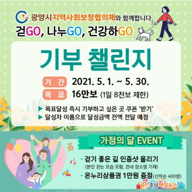 ±¤¾ç½Ã´Â 5¿ù Áß ÀÚ½ÅÀÇ °È´Â ¸ð½ÀÀÌ ´ã±ä Áö¿ª ³» °È±âÁÁÀº ±æ »çÁø°ú Àå¼Ò¸íÀ» ±¤¾ç½Ã °ø½ÄÄ¿¹Â´ÏƼ °Ô½ÃÆÇ¿¡ ¿Ã¸®¸é ¼±Âø¼ø 400¸íÀ» ¼±Á¤ÇØ ¿Â´©¸®»óǰ±Ç 1¸¸ ¿øÀ» Á¦°øÇÏ´Â °Ç° °È±â À̺¥Æ®µµ µ¿½Ã¿¡ ÁøÇàÇÑ´Ù.
