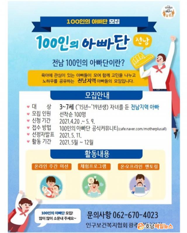 Âü°¡ ½ÅûÀº 5¿ù 9ÀϱîÁö ³×À̹ö Ä«Æä ¡®100ÀÎÀÇ ¾Æºü´Ü °ø½Ä Ä¿¹Â´ÏƼ¡¯(https://cafe.naver.com/motherplusall)¿¡ ÇÏ¸é µÈ´Ù. Àü³²µµ´Â 5¿ù 11ÀÏ Ä¿¹Â´ÏƼ °øÁö»çÇ׿¡ ¼±Á¤ÀÚ¸¦ ¹ßÇ¥ÇÒ ¿¹Á¤ÀÌ´Ù.