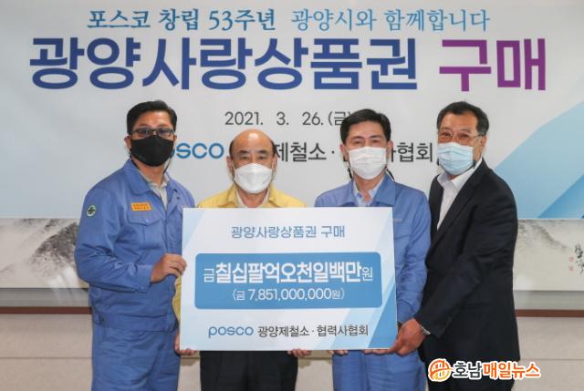 ÇÑÆí, Á¤Çöº¹ ½ÃÀåÀº ¡°Æ÷½ºÄÚ´Â Ç×»ó Áö¿ªÀÌ Èûµé°í ¾î·Á¿ï ¶§ Áö¿ª±â¾÷À¸·Î¼ Áö¿ª¹Î Áö¿ø¿¡ ¼Ö¼±¼ö¹üÇß´Ù¸ç, ÇÔ²² ÇØÁֽŠÆ÷½ºÄÚ ÀÓÁ÷¿ø°ú Çù·Â»ç ȸ¿ø ¿©·¯ºÐ²² Áø½ÉÀ¸·Î °¨»çÀÇ ¸»¾¸À» ÀüÇÑ´Ù¡±°í ¸»Çß´Ù.