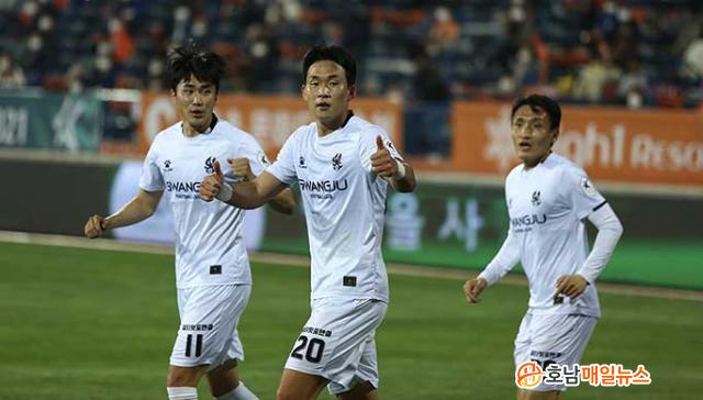 Àü¹ÝÀ» 0-0À¸·Î ¸¶Ä£ ±¤ÁÖ´Â ÈÄ¹Ý ½ÃÀÛ°ú ÇÔ²² ¼Û½Â¹Î ´ë½Å ±èÁÖ°ø ÅõÀÔÀ¸·Î º¯È¸¦ Áá´Ù. ÈĹÝ11ºÐ ¾öÁö¼ºÀÌ ¹Ú½º ¹Ù±ù¿¡¼ °·ÂÇÑ Á߰Ÿ® ½´ÆÃÀ» ½ÃµµÇßÁö¸¸, °¿ø °ñŰÆÛ ±èÁ¤È£ ¼±¹æ¿¡ ¸·Çû´Ù.