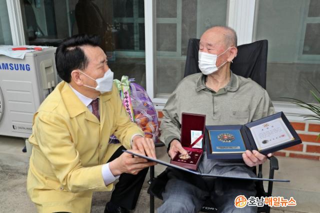 ¡¸ÀåÈﱺ È£±¹¿µ¿õ ã±â¡¹ »ç¾÷À» ÅëÇØ ½Å¿øÀÌ ¹àÇôÁø ¼öÈÆÀÚ ±è»óÀÍ(94¼¼) ¾¾´Â 1953³â 6¿ù °¿øµµ ö¿ø±º ±ÝÈÁö±¸ÀüÅõ¿¡ Âü°¡ÇØ ÇõÇõÇÑ °øÀ» ¼¼¿üÀ¸³ª, ´ç½ÃÀÇ ±Þ¹ÚÇÑ ÀüȲ°ú ÀüÀïÈÄÀ¯ÁõÀ¸·Î ÈÆÀåÀ» ¼ö¿©¹ÞÁö ¸øÇϰí 68³âÀÌ Áö³ª ÈÆÀåÀ» ¹Þ°Ô µÆ´Ù.