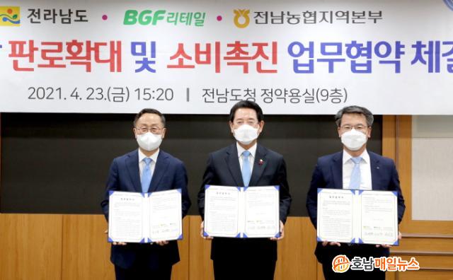 Àü³²µµ´Â 23ÀÏ µµÃ»¿¡¼ ±è¿µ·Ï µµÁö»ç, À̰ÇÁØ BGF ¸®Å×ÀÏ »çÀå, ¹Ú¼È« ³óÇùÀü³²Áö¿ªº»ºÎÀå µîÀÌ Âü¼®ÇÑ °¡¿îµ¥ Àü³²½Ò ÆÇ·Î È®´ë ¹× ¼Òºñ ÃËÁøÀ» À§ÇÑ ¾÷¹«Çù¾àÀ» Çß´Ù.