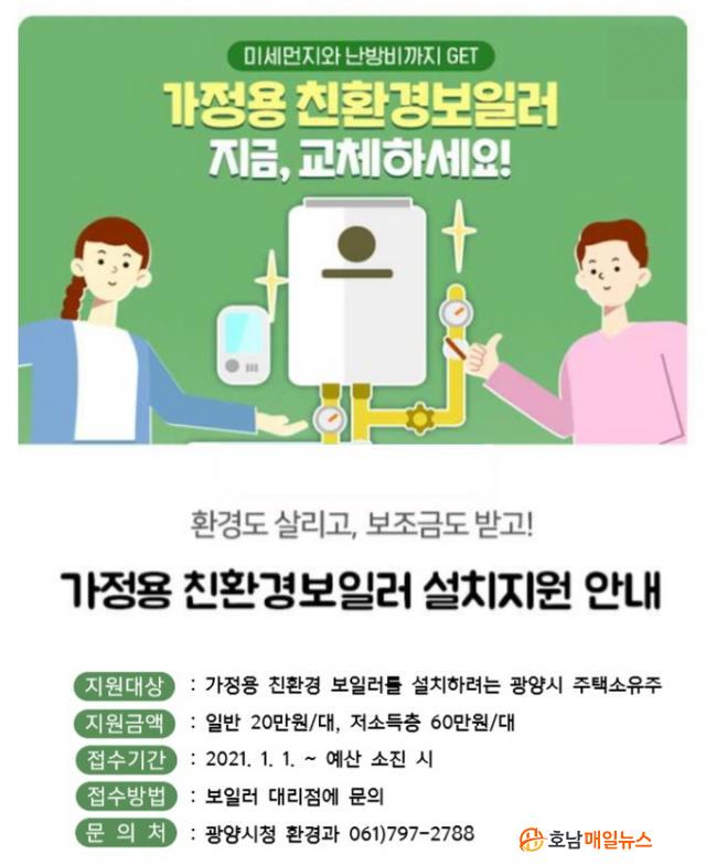Áö¿ø´ë»óÀº Çѱ¹È¯°æ»ê¾÷±â¼ú¿øÀÇ È¯°æÇ¥Áö ÀÎÁõÀ» ¹ÞÀº º¸ÀÏ·¯¸¦ ¼³Ä¡ÇÏ´Â ±¤¾ç½Ã¹ÎÀ¸·Î, Áö¹æ¼¼ ü³³ÀÌ ¾ø°í 2021³â 1¿ù 1ÀÏ ÀÌÈÄ Ä£È¯°æ º¸ÀÏ·¯¸¦ ½Å±Ô ¼³Ä¡ ¶Ç´Â ±³Ã¼ÇÏ´Â ÁÖÅà ¼ÒÀ¯ÁÖ³ª ¼¼ÀÔÀÚ°¡ ½Åû °¡´ÉÇÏ¸ç ¼¼ÀÔÀÚ´Â ÁÖÅüÒÀ¯ÀÚ µ¿ÀǸ¦ ¹Þ¾Æ ½ÅûÇÒ ¼ö ÀÖ´Ù.