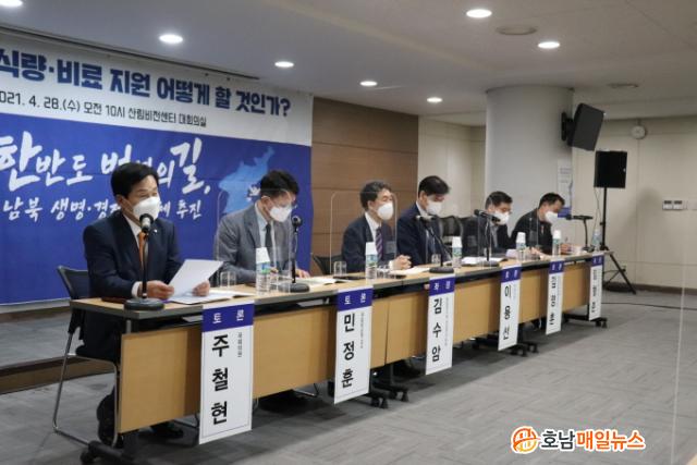 ÀÌÁ¾¼® Àü Àå°üÀÌ ¡®ºÏÇÑ °æÁ¦»óȲ°ú ´ëºÏ ÀεµÀû Áö¿ø¡¯¿¡ °üÇÑ ±âÁ¶¹ßÁ¦¸¦, ±è¼ö¾Ï ÅëÀÏ¿¬±¸¿ø ¼±ÀÓ¿¬±¸À§¿øÀÌ Åä·Ð ÁÂÀåÀ» ¸Ã°í, ÁÖöÇö ÀÇ¿ø(±¹È¸ ³ó¸²Ãà»ê½ÄÇ°ÇØ¾ç¼ö»êÀ§¿øÈ¸), À̿뼱 ÀÇ¿ø(±¹È¸ ¿Ü±³ÅëÀÏÀ§¿øÈ¸), ¹ÎÁ¤ÈÆ ±¹¸³¿Ü±³¿ø ±³¼ö, ±è¿µÈÆ Çѱ¹³óÃ̰æÁ¦¿¬±¸¿ø ¼±ÀÓ¿¬±¸À§¿ø, ÀÓÇüÁØ À¯¿£¼¼°è½Ä·®°èȹ(WFP) Çѱ¹»ç¹«¼ÒÀåÀÌ Âü¿©ÇØ ±³Âø»óÅ¿¡ ³õÀÎ ³²ºÏ°ü°è¸¦ Ÿ°³Çϱâ À§ÇÑ ÀεµÀû ´ëºÏ ½Ä·®¡¤ºñ·á Áö¿ø ¹æ¾ÈÀ» ³íÀÇÇß´Ù.