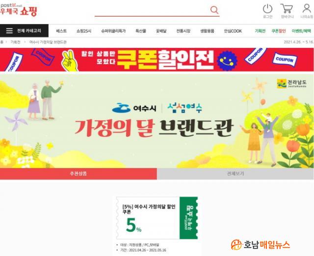 ¿©¼ö½Ã´Â ´ÙÀ½ ´Þ 16ÀϱîÁö ¿ìü±¹¼îÇθô(¿©¼ö½Ã ºê·£µå°ü)¿¡¼ ÆÇ¸ÅÇÏ´Â ¿©¼ö½Ã ³ó¼öƯ»êǰ¿¡ ´ëÇØ 5% ÇÒÀÎÄíÆùÀ» Áö±ÞÇÑ´Ù°í ¹àÇû´Ù.