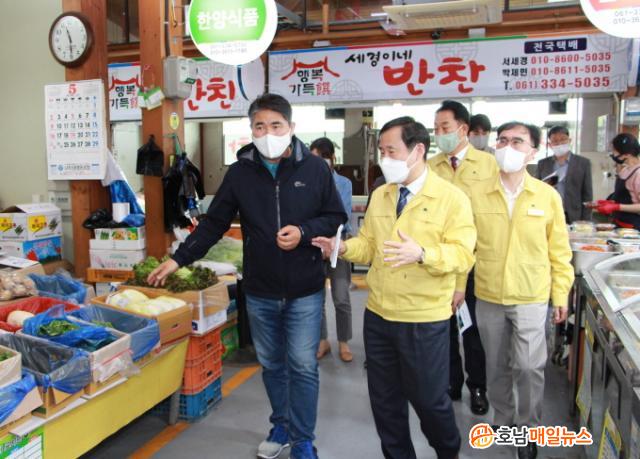 Á¤ ºÎ½ÃÀåÀº ÀÌ ±â°£ ¿µ»êÆ÷dz¹°½ÃÀå »óÀÎȸ¿Í ÇÔ²² Á¡Æ÷, ½Ä´ç°¡¸¦ ã¾Æ ¹æ¹®°´ °¨¼Ò¿Í ¼Òºñ ħü·Î ¾î·Á¿òÀ» °Þ´Â ½ÃÀå »óÀεéÀ» À§·Î, °Ý·ÁÇß´Ù.