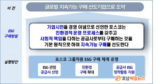Æ÷½ºÄÚ´Â °æ¿µÀ̳äÀÎ ±â¾÷½Ã¹ÎÀÇ 5´ë ºê·£µå Áß ¡®Together With POSCO¡¯(µ¿¹Ý¼ºÀå)¿Í ¡®Green With POSCO¡¯(ź¼ÒÁ߸³)¿¡ ±â¹ÝÇØ, ¡®Ä£È¯°æÀûÀÌ°í »çȸÀû Ã¥ÀÓÀ» ´ÙÇÏ´Â °ø±Þ»ç·ÎºÎÅÍ ±¸¸ÅÇÏ´Â °ÍÀ» ±âº» ¿øÄ¢À¸·Î ÇÏ¿© Áö¼Ó°¡´ÉÇÑ ±¸¸Å¸¦ ¼±µµÇÑ´Ù¡¯´Â ±¸¸Å¹æÄ§ ÇÏ¿¡ ±×·ì Â÷¿øÀÇ ¡®Æ÷½ºÄÚÇü ESG ±¸¸Å ü°è¡¯¸¦ ±¸ÃàÇß´Ù.
