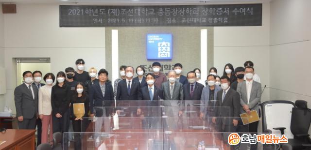 ±è°©ÁÖ µÎ¸ÞǪµå½Ã½ºÅÛ¢ß ´ëÇ¥°¡ 100¸¸¿øÀ» ±âºÎÇÏ¿© ¼±Á¤µÈ ±è°©ÁÖÀåÇлý 1¸í(ÃÑÀå Ãßõ), À̽¸² »óÁö´ëÇб³ ±³¼ö°¡ 100¸¸¿øÀ» ±âºÎÇÏ¿© ¼±Á¤µÈ À̽¸² ÀåÇлý 1¸í(ÃÑÀå Ãßõ) µî ÀçÇлý 21¸í¿¡°Ô ÀåÇÐÁõ¼¿Í ÇÔ²² °¢ 100¸¸¿ø¾¿ ÃÑ 2100¸¸¿øÀÇ ÀåÇбÝÀÌ ¼ö¿©Çß´Ù.