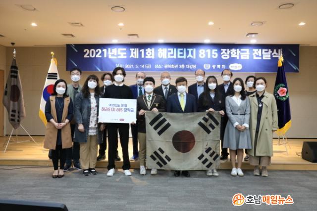 »çÁø¼³¸í:14ÀÏ, ±è¿ø¿õ ±¤º¹È¸Àå(°¡¿îµ¥) ÀÌ Á¦1ȸ Ç츮ƼÁö 815 ÀåÇлýÀ¸·Î ¼±¹ßµÈ Áß¡¤°í±³ ¹× ´ëÇб³ ´ëÇ¥ Çлýµé¿¡°Ô ÀåÇбÝÀ» Àü´ÞÇϰí, Æ÷Á ÃëÇϰí ÀÖ´Ù.