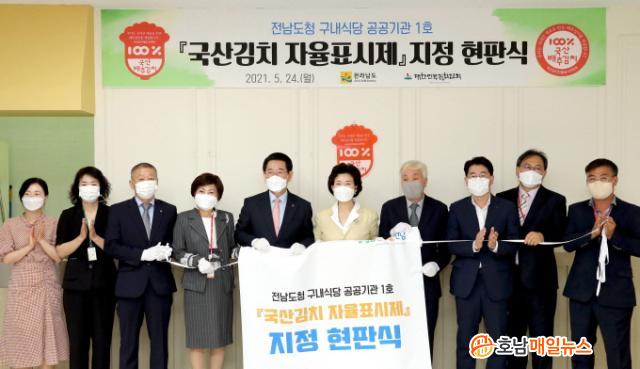 ÇÑÆí, ±è¿µ·Ï µµÁö»ç´Â ¡°±èÄ¡ Á¾ÁÖ±¹ ´ëÇѹα¹À» ´ëÇ¥ÇÏ´Â ±èÄ¡ÀÇ º»°íÀå Àü³²µµ°¡ °ø°ø±â°ü 1È£ ±¹»ê±èÄ¡ »ç¿ëÀÎÁõ ÀÚÀ²Ç¥½ÃÁ¦ ÁöÁ¤À» ¹Þ¾Æ ±â»Ú°í, °ø°ø±â°üºÎÅÍ ±¹»ê±èÄ¡ ¼ÒºñÃËÁø¿¡ ¼Ö¼±¼ö¹üÇØ¾ß ÇÑ´Ù¡±¸ç ¡°±èÄ¡ »ý»êºñ Àý°¨À» ÅëÇØ ³»¼ö¼Òºñ¿Í ¼öÃâÀÌ È®´ëµÇµµ·Ï ¿øÀç·á ÀúÀå‧¹°·ù ¹× ÀÚµ¿È »ý»ê½Ã¼³ ±¸Ãà µî Áö¿øÀ» È®´ëÇØ ±èÄ¡»ê¾÷À» ÁÖµµÇϰڴ١±°í ¸»Çß´Ù.