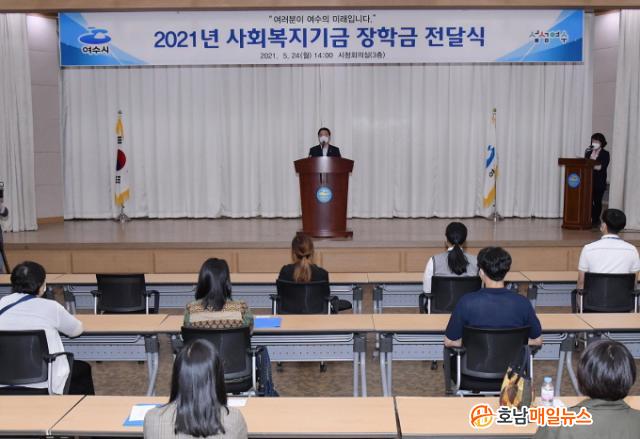 ½Ã¿¡ µû¸£¸é Áö³ 24ÀÏ ½Ãû ȸÀǽǿ¡¼ 2021³â ¿©¼ö½Ã »çȸº¹Áö±â±Ý ÀåÇÐ±Ý Àü´Þ½ÄÀÌ Äڷγª19·Î Ãà¼Ò °³ÃֵƴÙ. À̳¯ ±Ç¿ÀºÀ ¿©¼ö½ÃÀåÀº 30¸íÀÇ Çлýµé¿¡°Ô ÀåÇбÝÀ» Áö±ÞÇÏ¸ç °Ý·Á¿¡ ³ª¼¹´Ù.