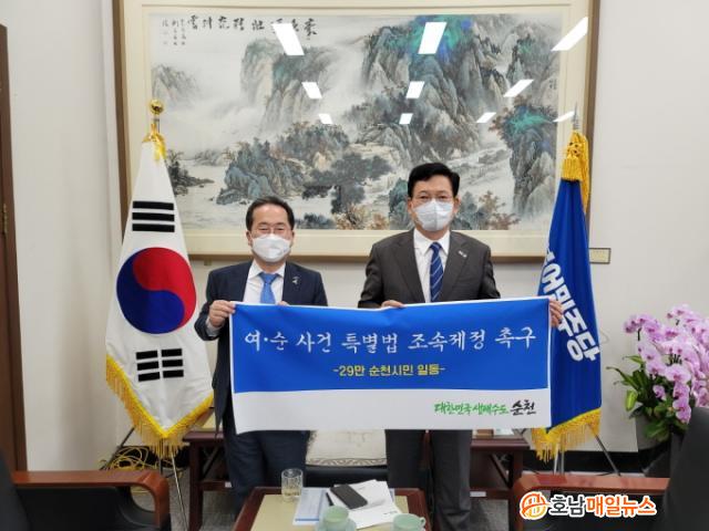 ¼Û¿µ±æ ´ëÇ¥´Â ÁÖ¿ä Çö¾È»ç¾÷¿¡ ´ëÇØ °ø°¨Çϸç 2023¼øÃµ¸¸±¹Á¦Á¤¿ø¹Ú¶÷ȸ°¡ ä 2³âÀÌ ³²Áö ¾ÊÀº »óȲ¿¡¼ ÁÖ¿ä »ç¾÷ÀÌ ¿øÈ°È÷ ÃßÁøµÇ¾î ¼º°øÀûÀ¸·Î °³ÃÖµÉ ¼ö ÀÖµµ·Ï Áö¿øÇϰí, ¿©¼ö¡¤¼øÃµ 10¡¤19 »ç°Ç Áø»ó±Ô¸í°ú Èñ»ýÀÚÀÇ ¸í¿¹ ȸº¹ µîÀ» À§ÇÑ Æ¯º°¹ýÀÌ Á¶¼ÓÈ÷ Á¦Á¤µÉ ¼ö ÀÖµµ·Ï ÈûÀ» º¸ÅÂ°Ú´Ù°í ¾à¼ÓÇß´Ù.