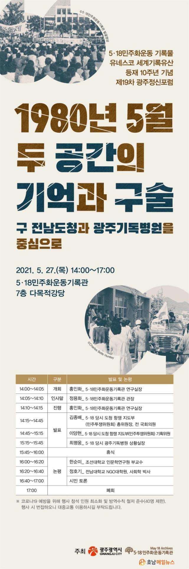 5¡¤18¹ÎÁÖȿ ¹× ±¤ÁÖÁ¤½Å¿¡ °üÇØ °ü½É ÀÖ´Â ½Ã¹Î ´©±¸³ª Âü¿©°¡ °¡´ÉÇÏÁö¸¸, Äڷγª19·Î »çȸÀû °Å¸®µÎ±â ¹æÄ§¿¡ µû¶ó Âü°¡ÀÚ¸¦ ¼±Âø¼ø 40¸íÀ¸·Î Á¦ÇÑÇÑ´Ù. ÃßÈÄ ±â·Ï°ü À¯Æ©ºê¿Í ȨÆäÀÌÁö¿¡¼ ¿µ»óÀ¸·Î È®ÀÎ °¡´ÉÇÏ´Ù.